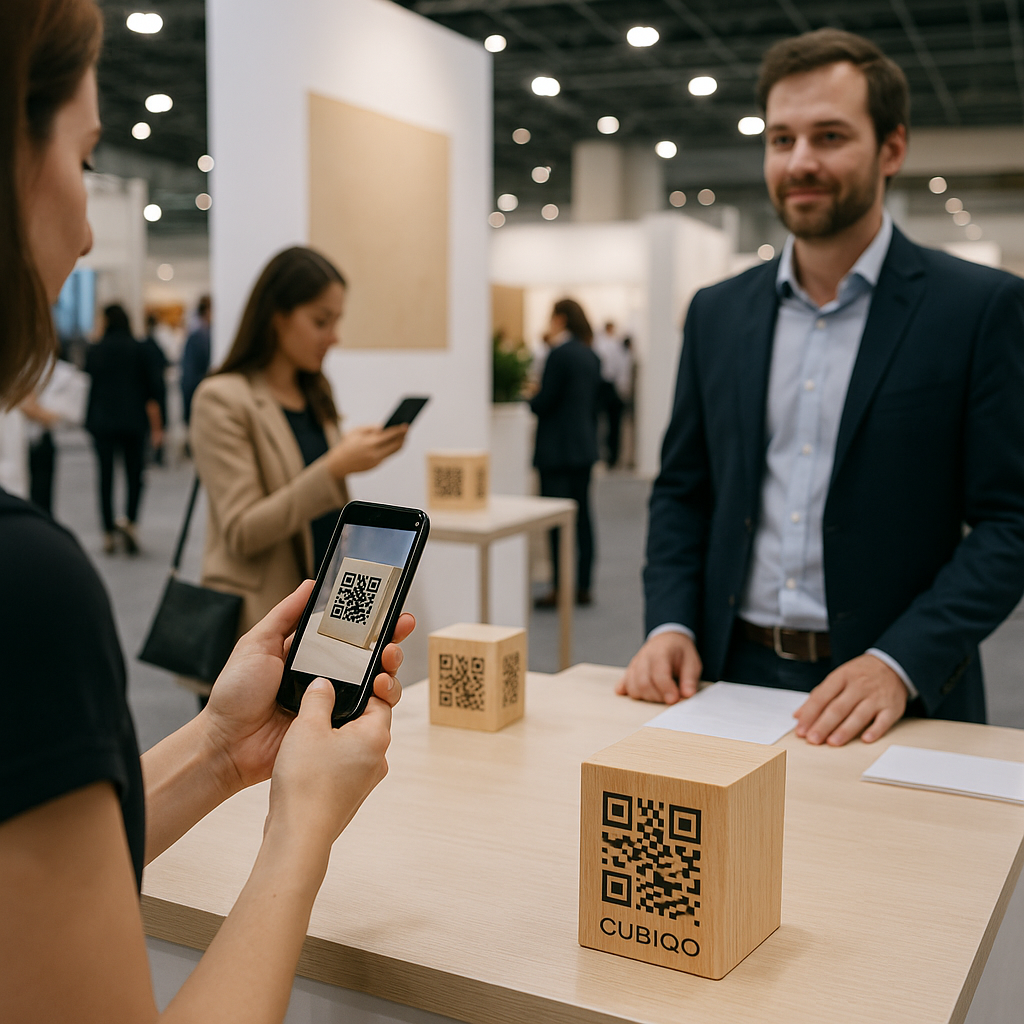 Cubiqo passar perfekt på mässor, utställningar eller i offentliga utrymmen. Ge besökare och medarbetare snabb tillgång till wi-fi, kontaktuppgifter, bokningssystem eller interna dokument. Smidigt och enkelt.